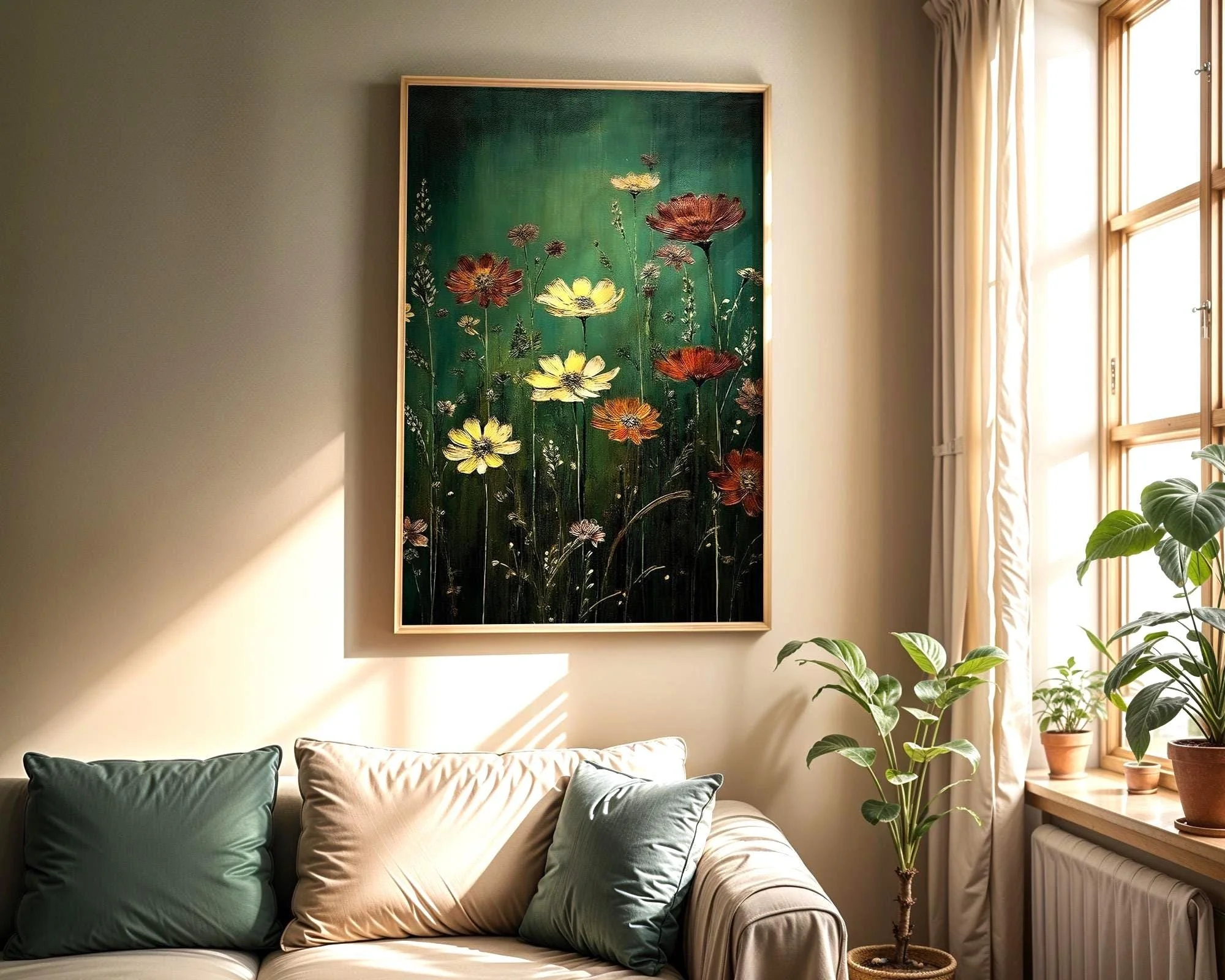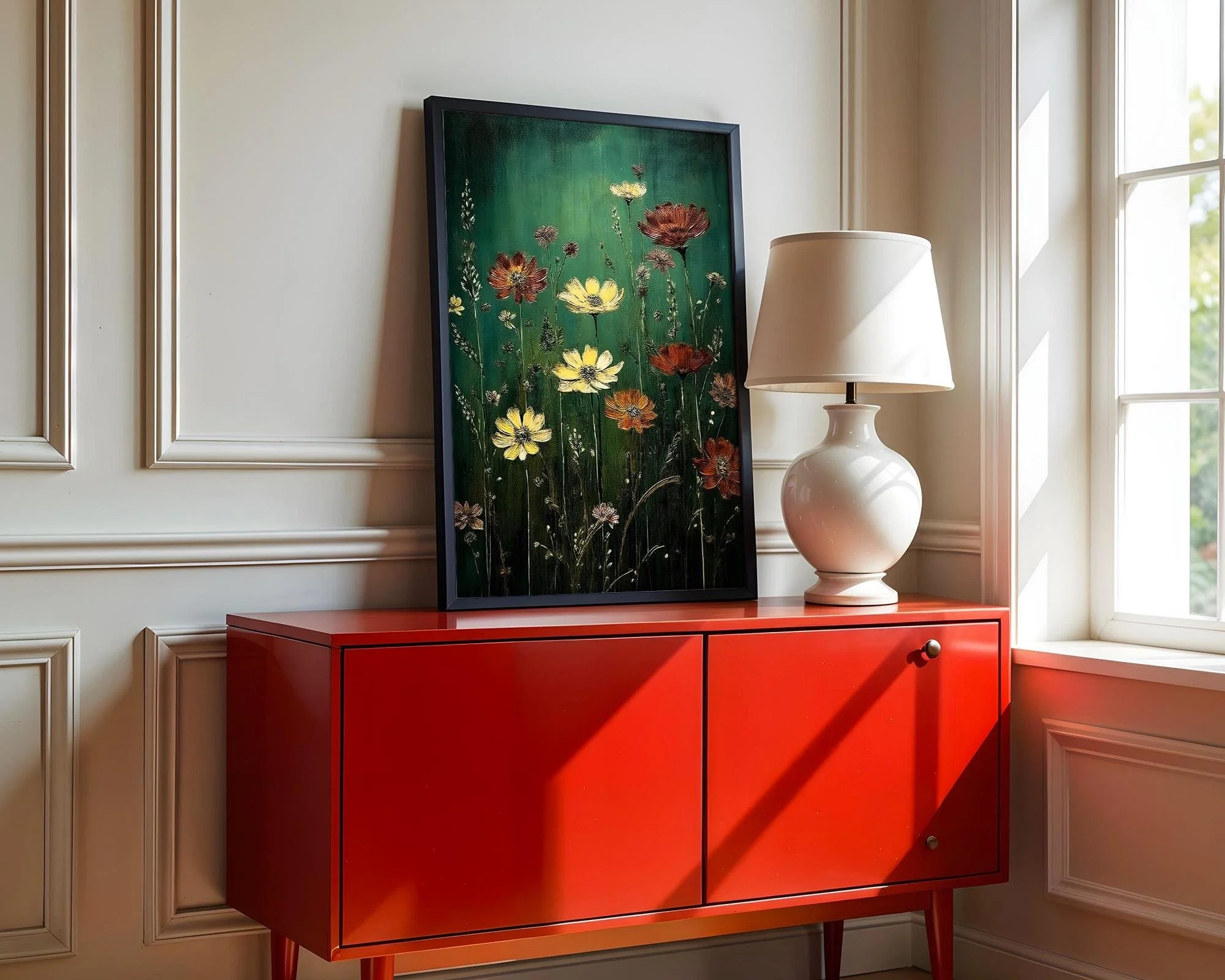 Bring the beauty of blooming wildflowers into your space with this vibrant oil painting print!