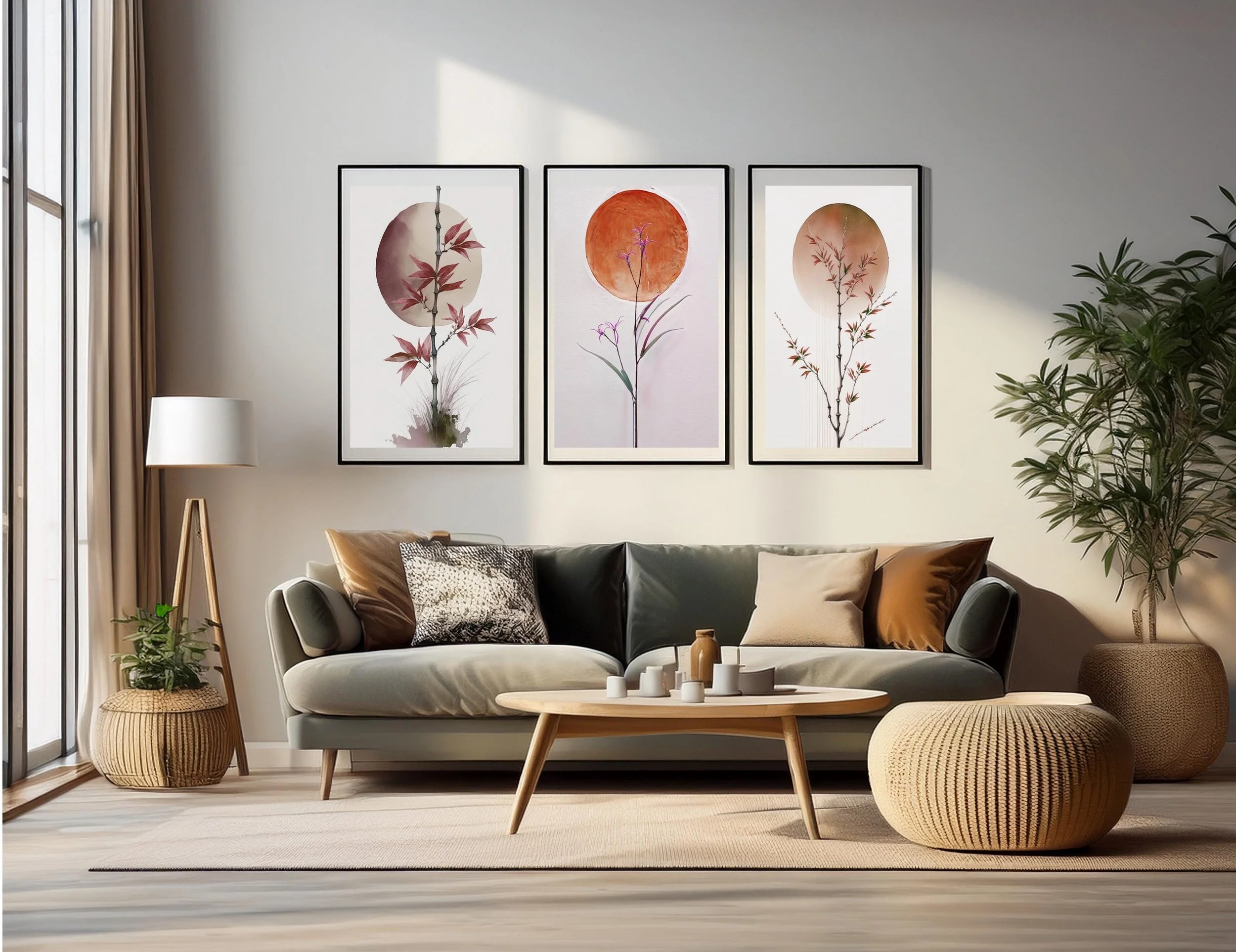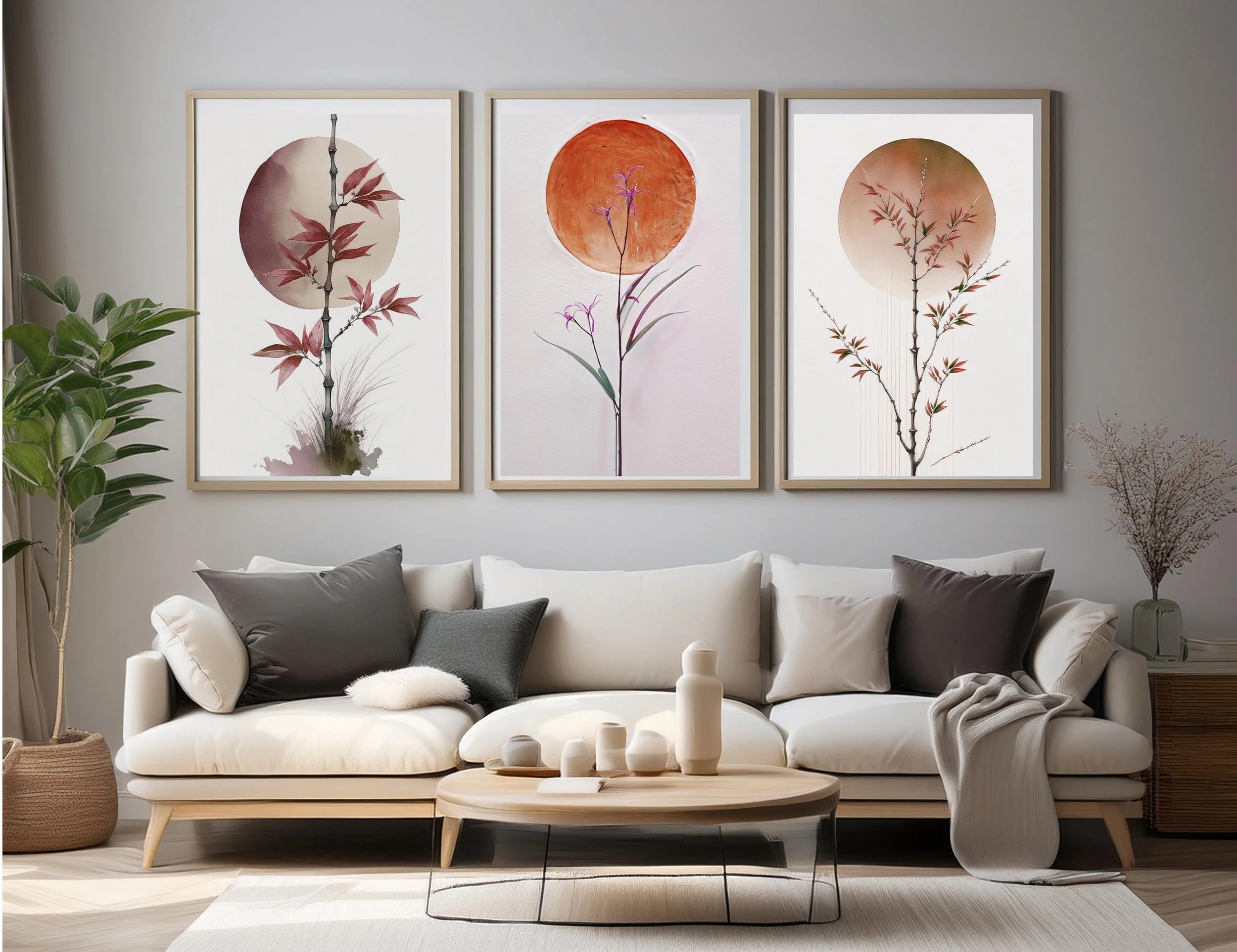 Japanese Floral Watercolor Art Print Set - Instant Download - Living Room Decor