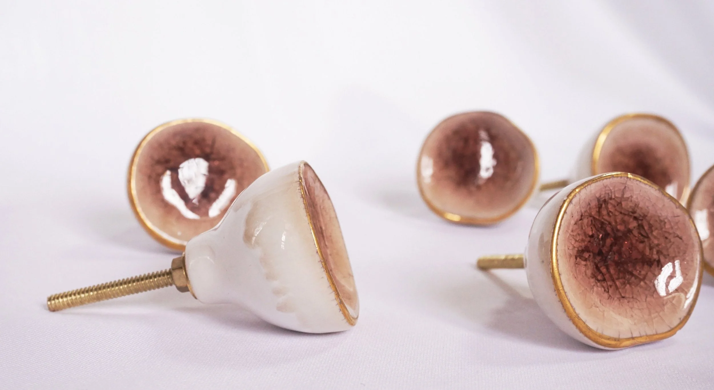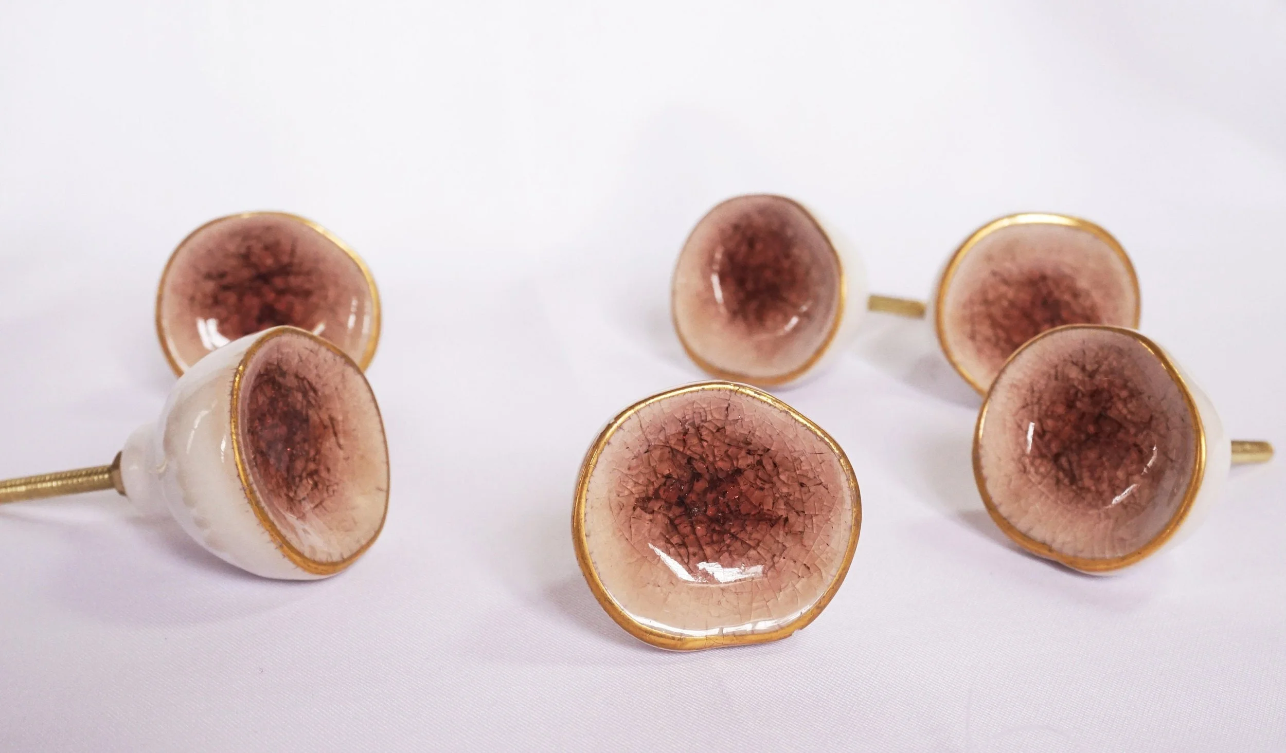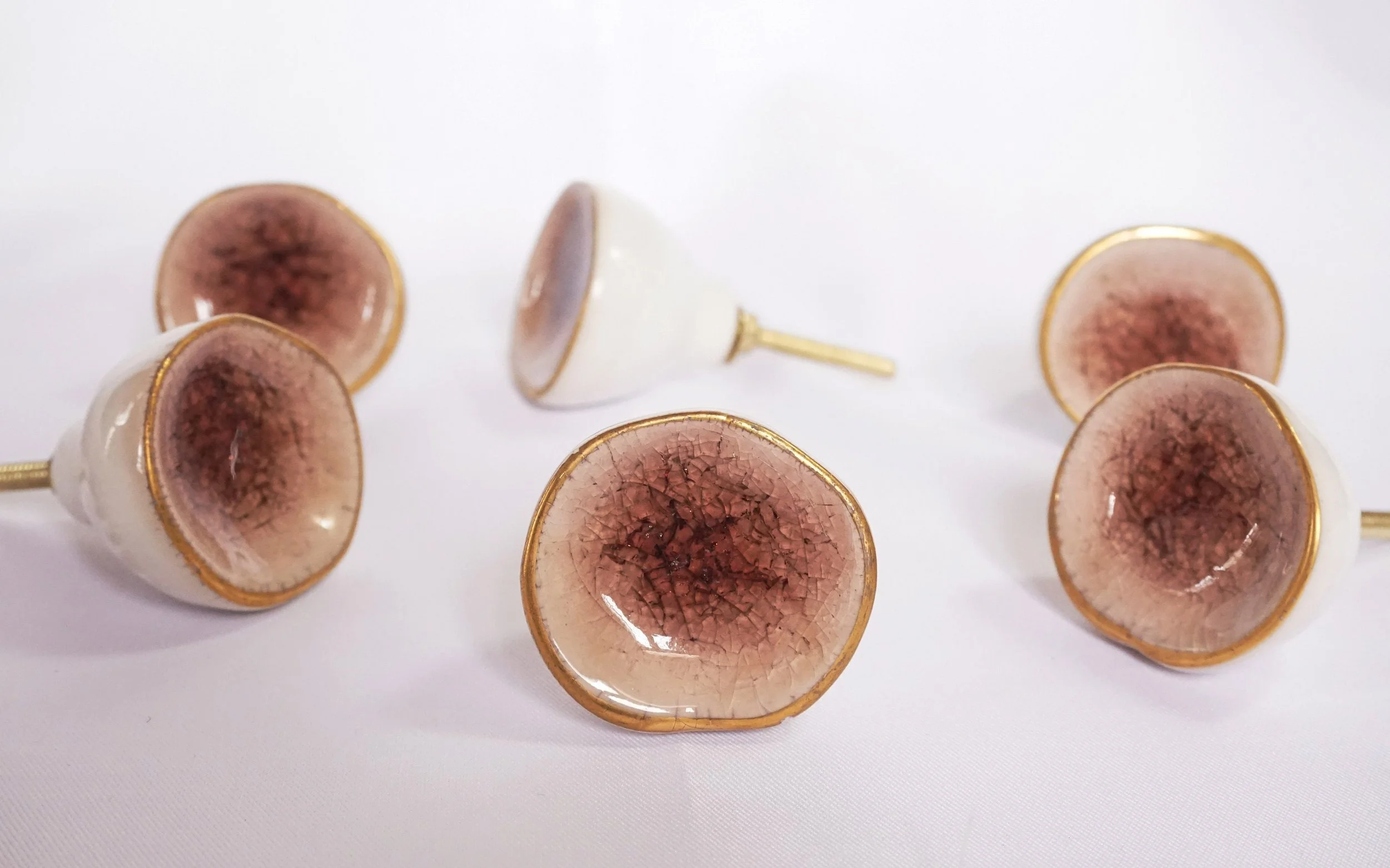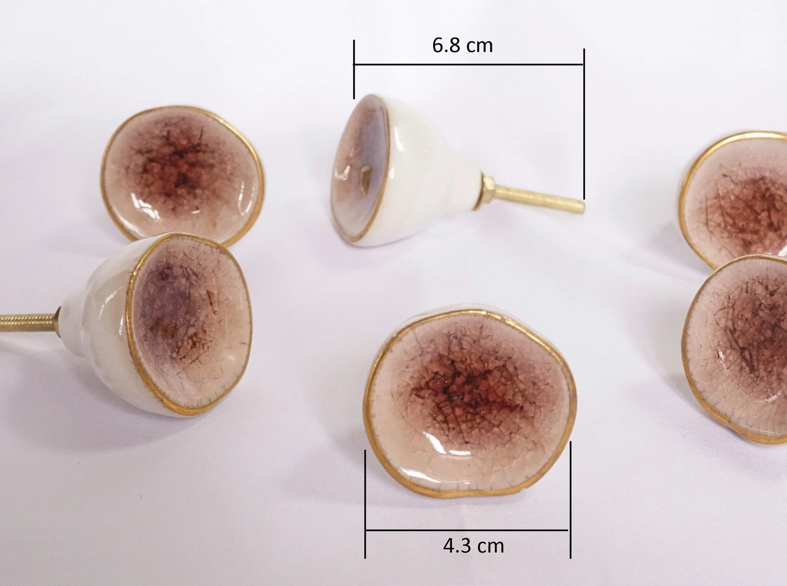 • Set of 6 Artisan Ceramic Crackle Effect Knobs / Handle / Pull with Golden Color Border & Fixing.