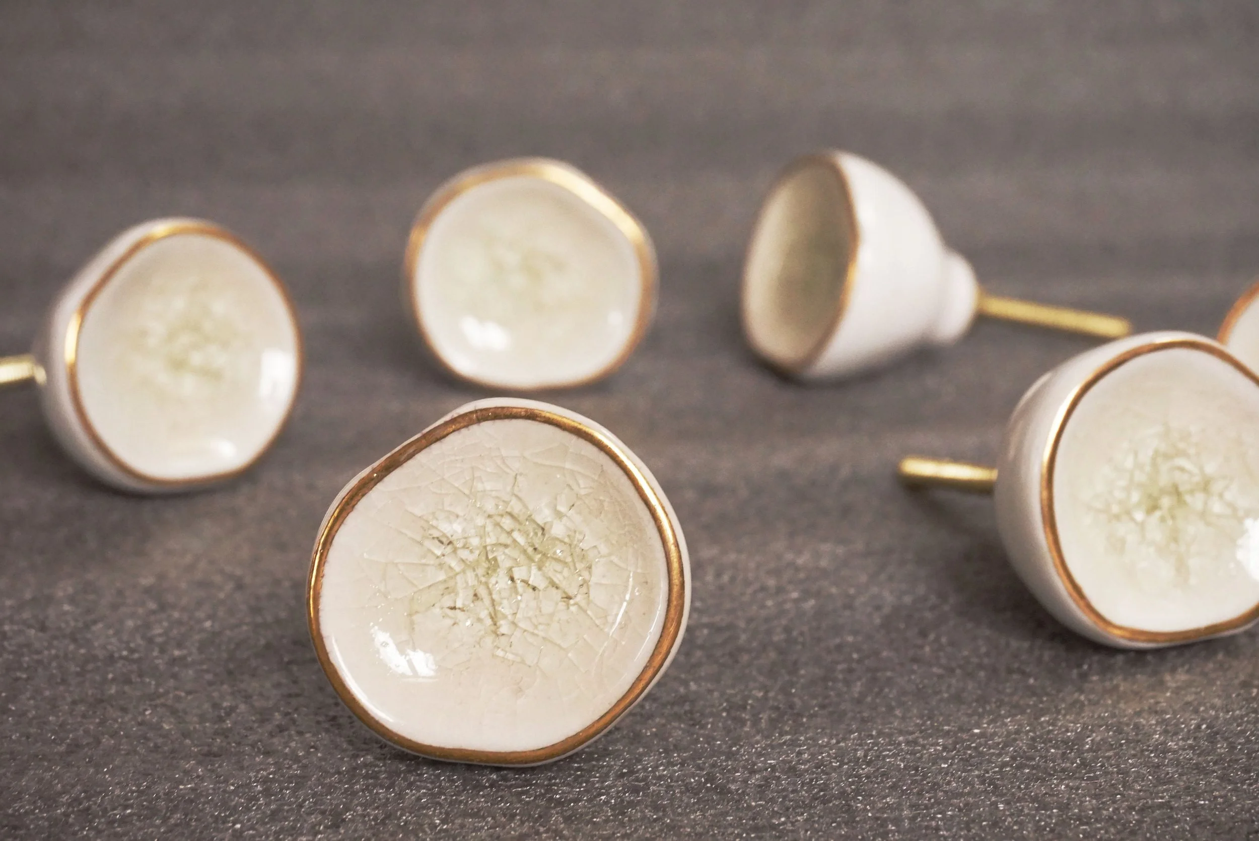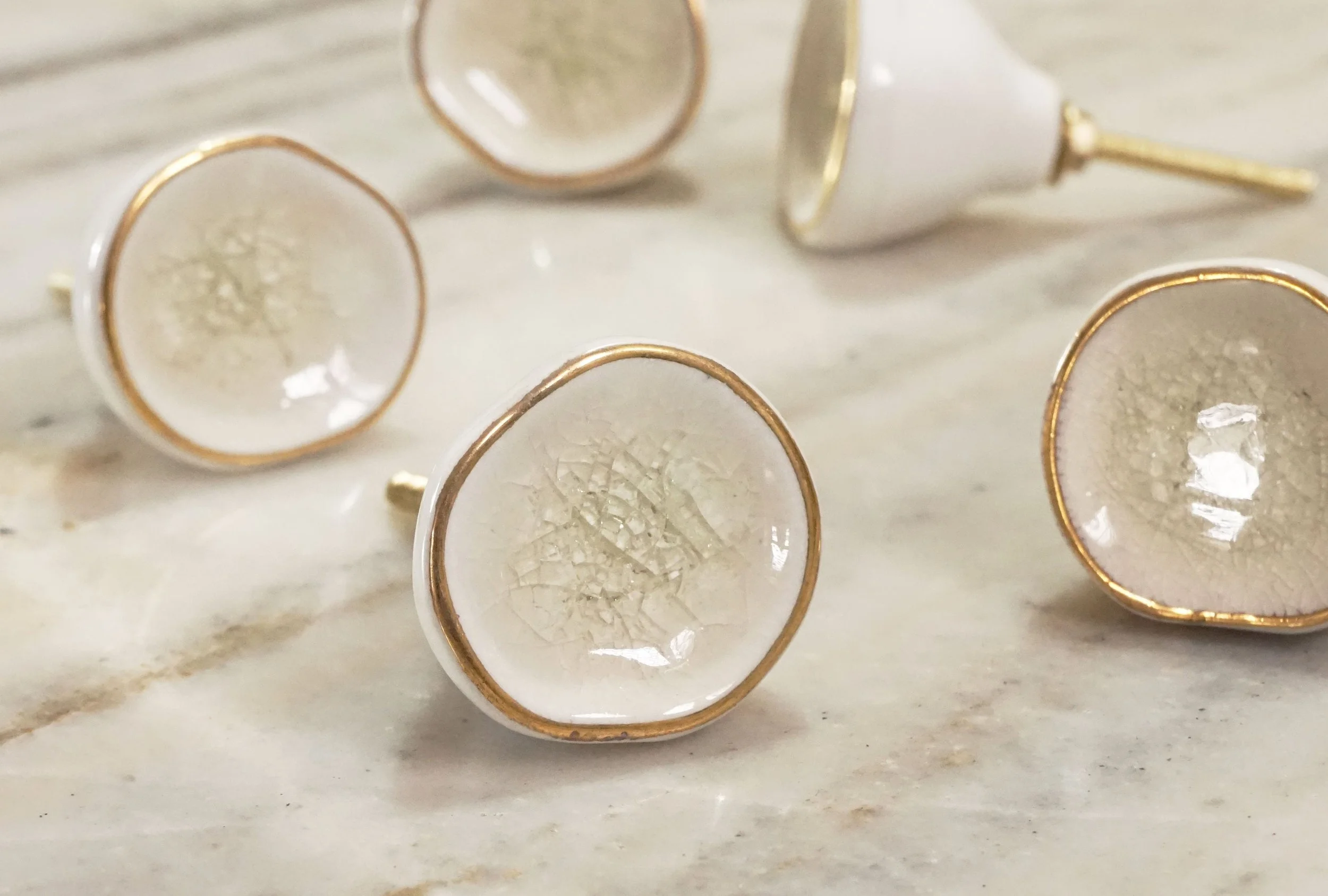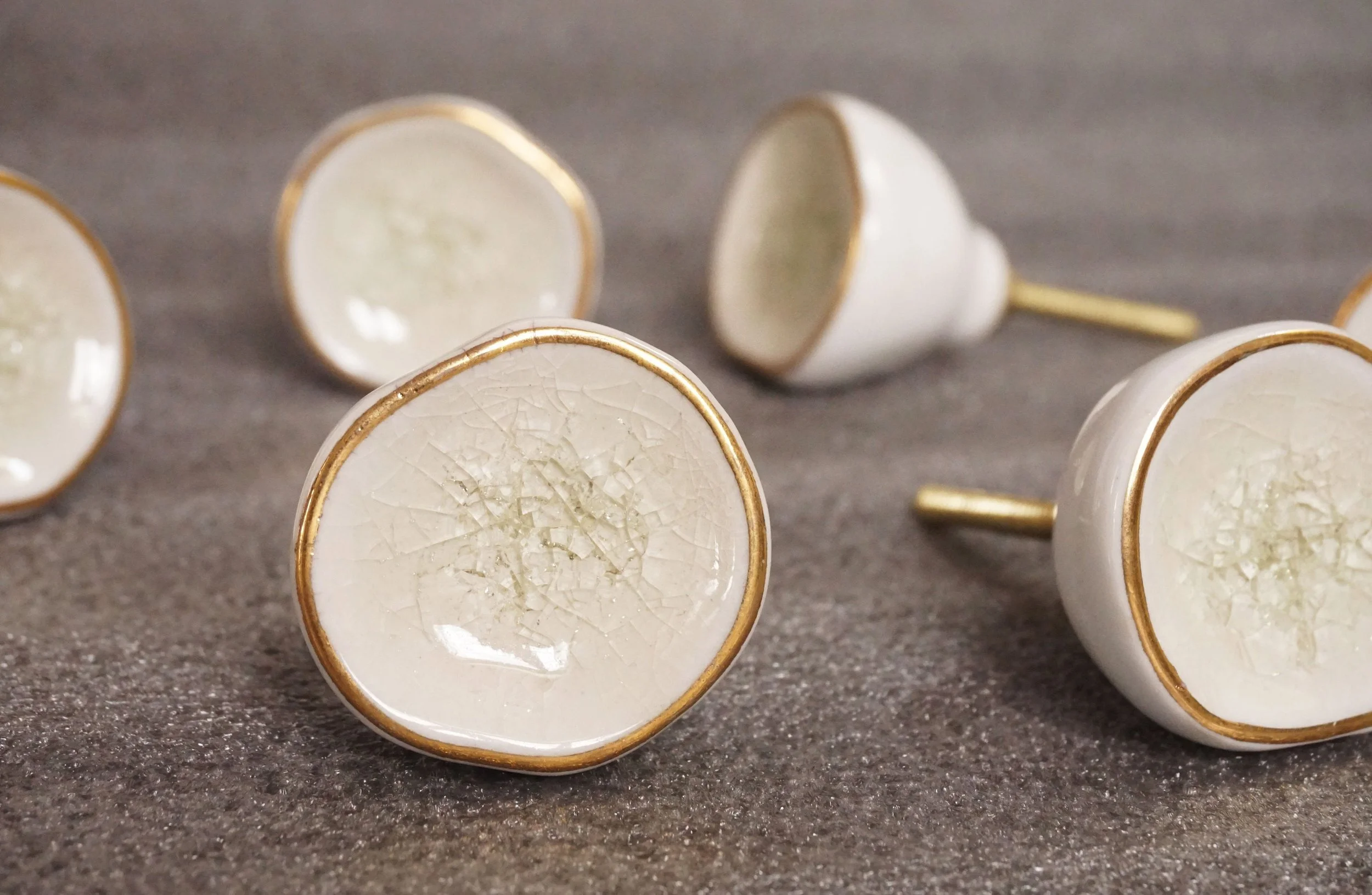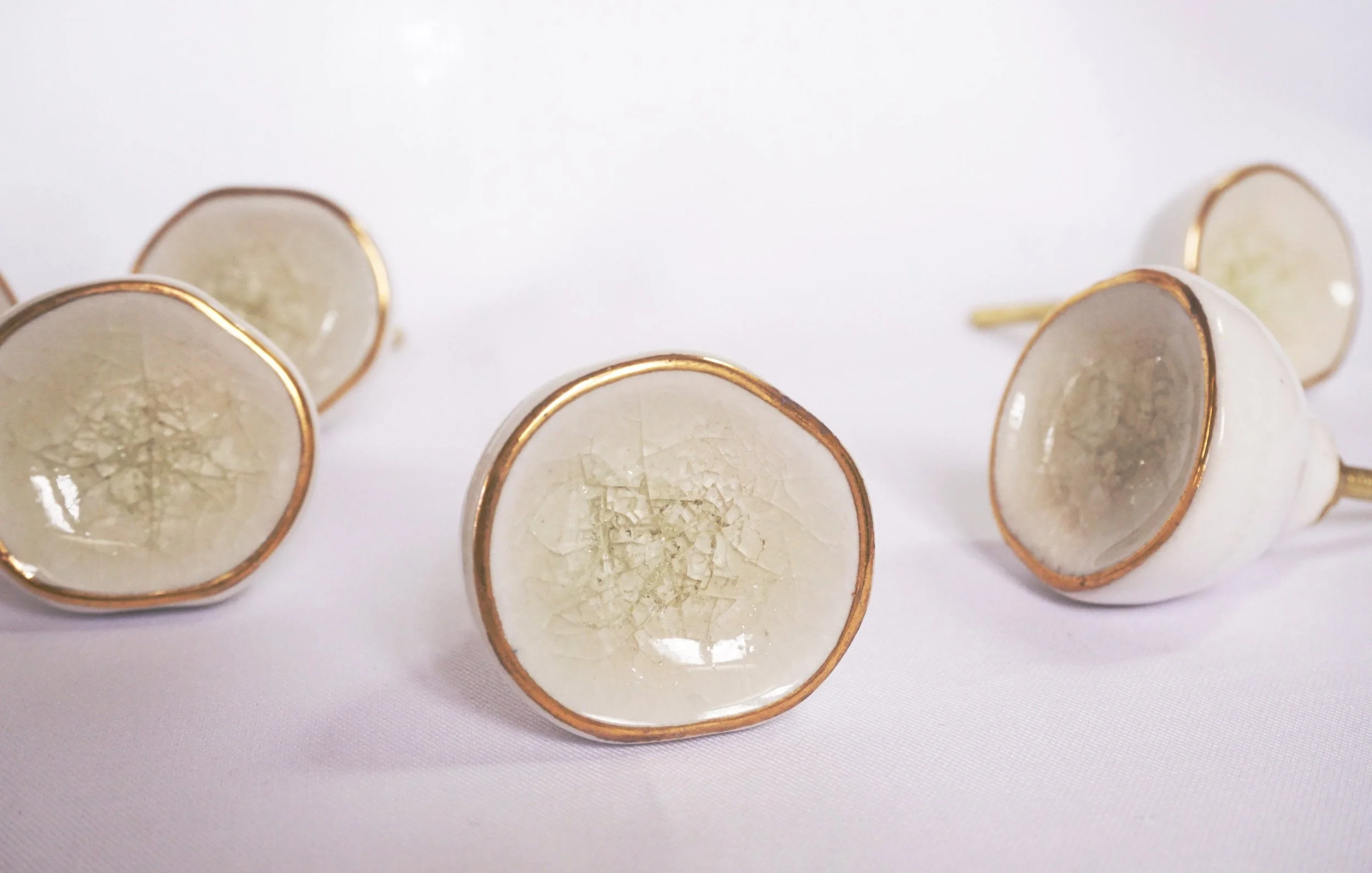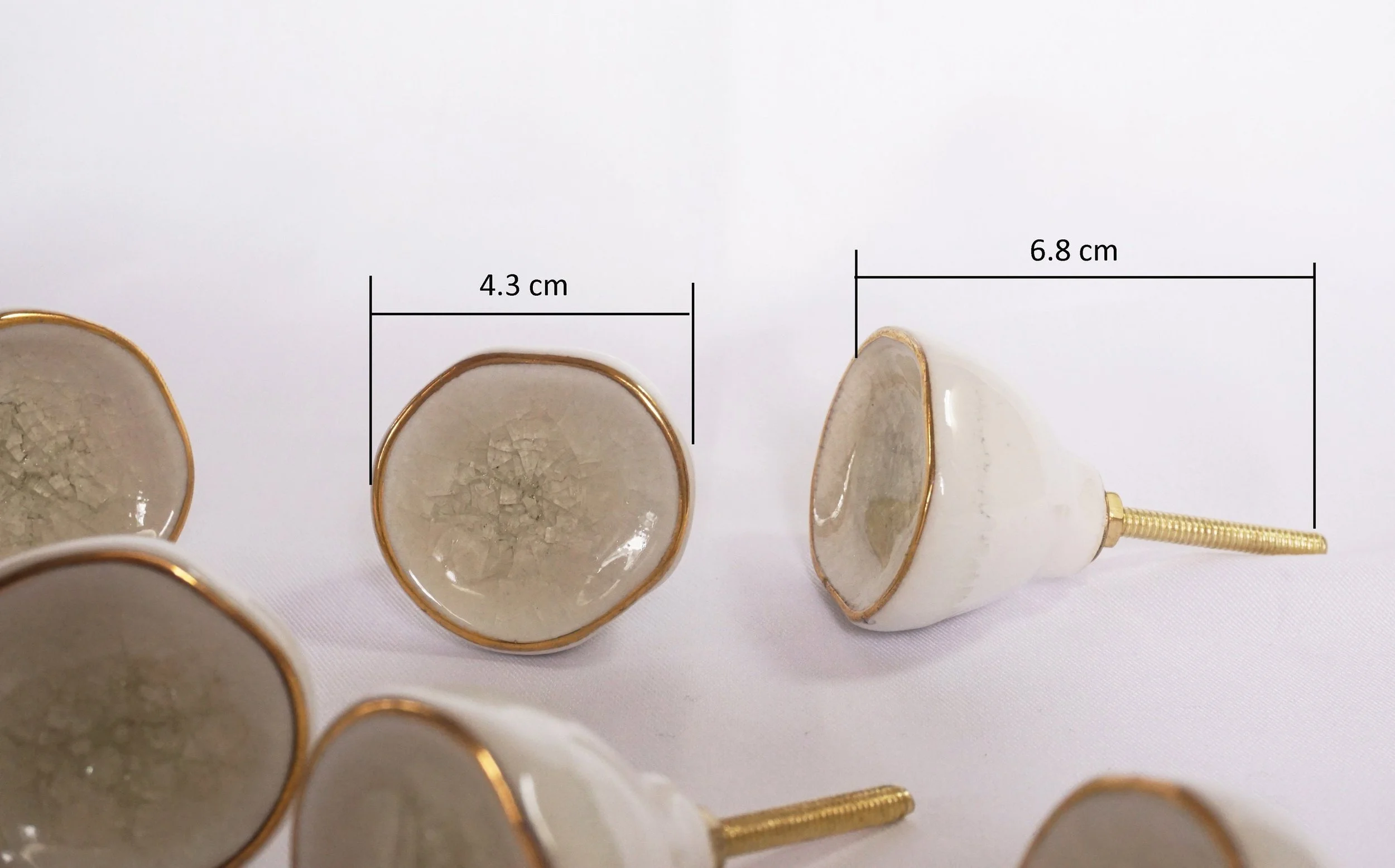 • Set of 6 Artisan Ceramic Crackle Effect Knobs / Handle / Pull with Golden Color Border & Fixing.