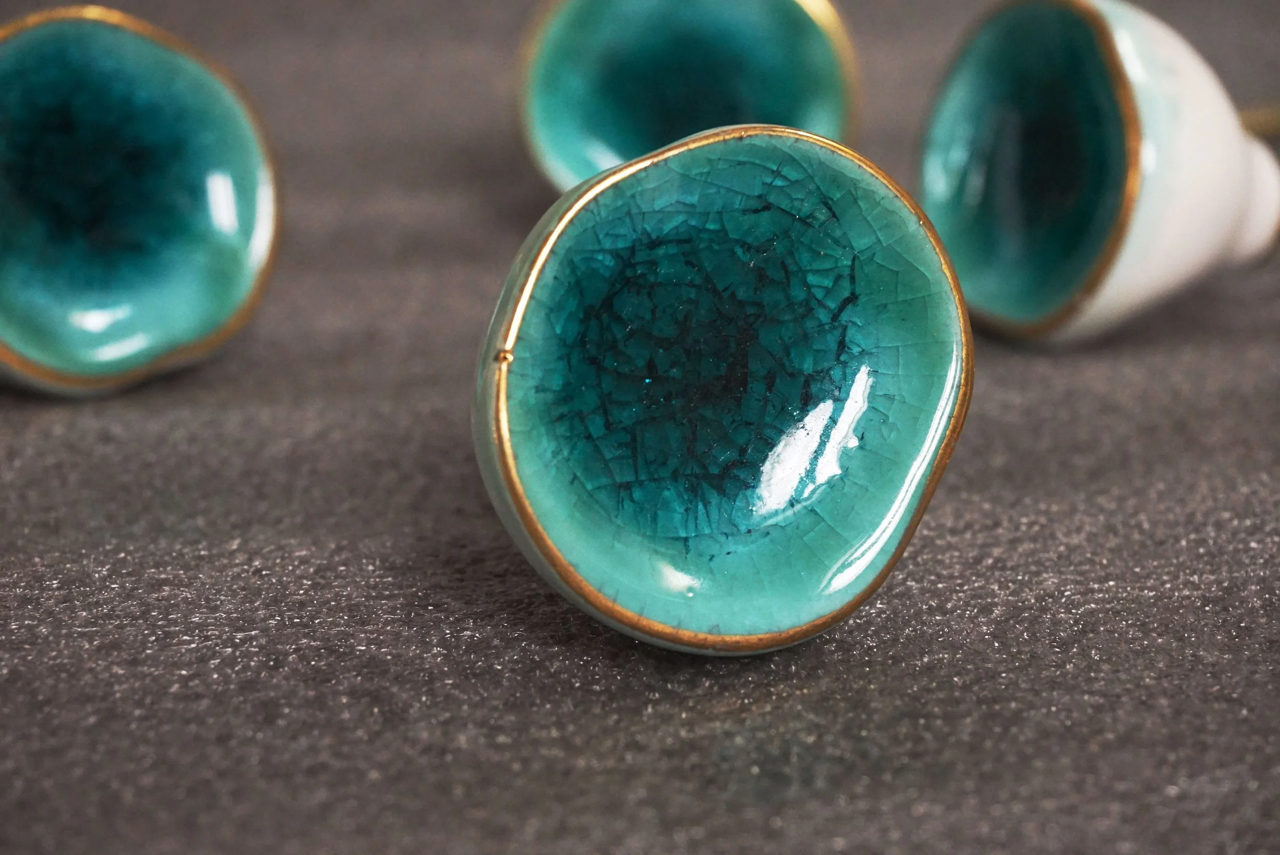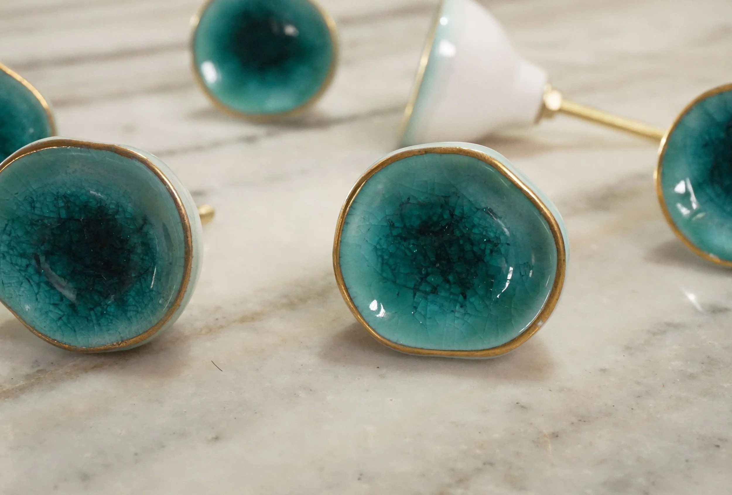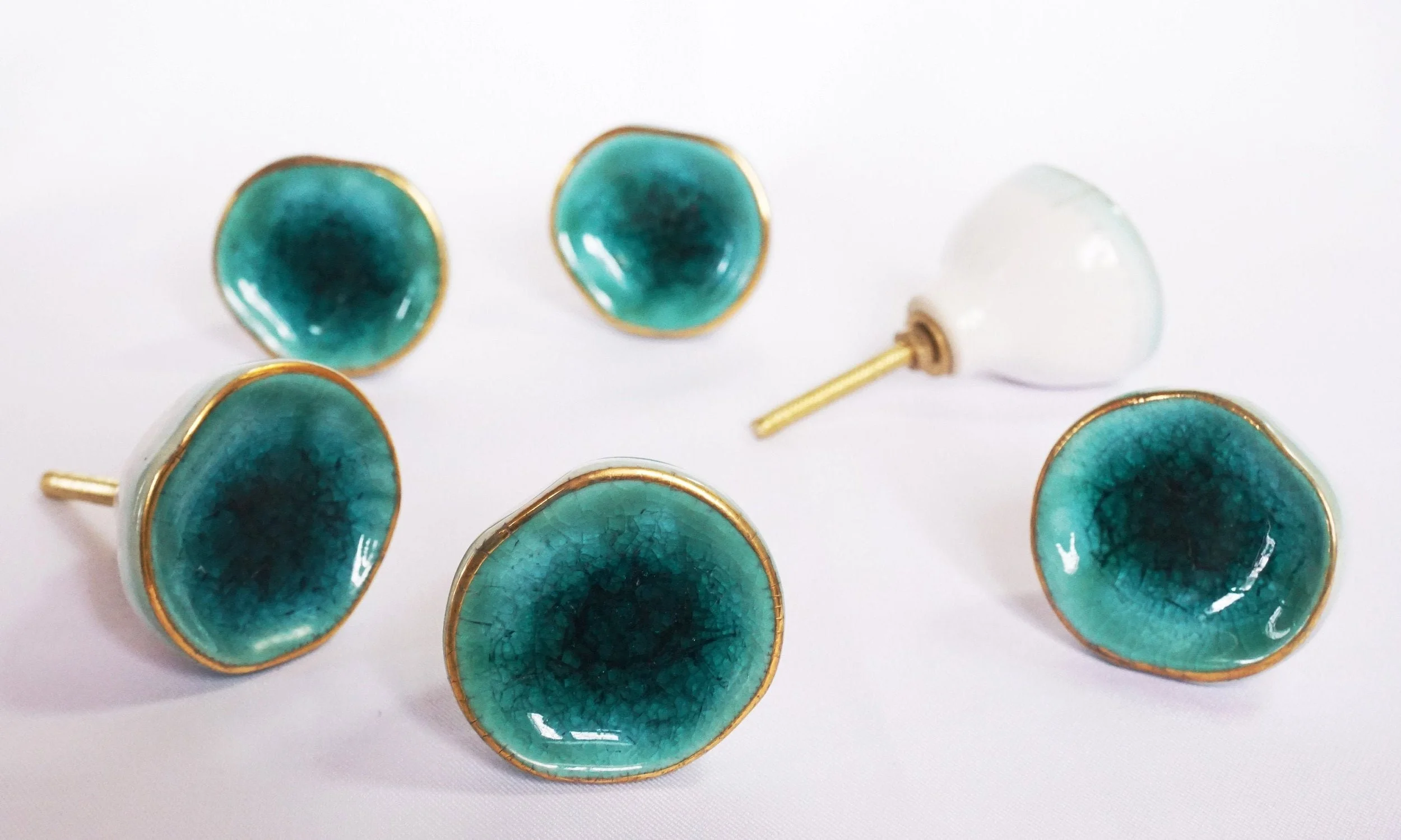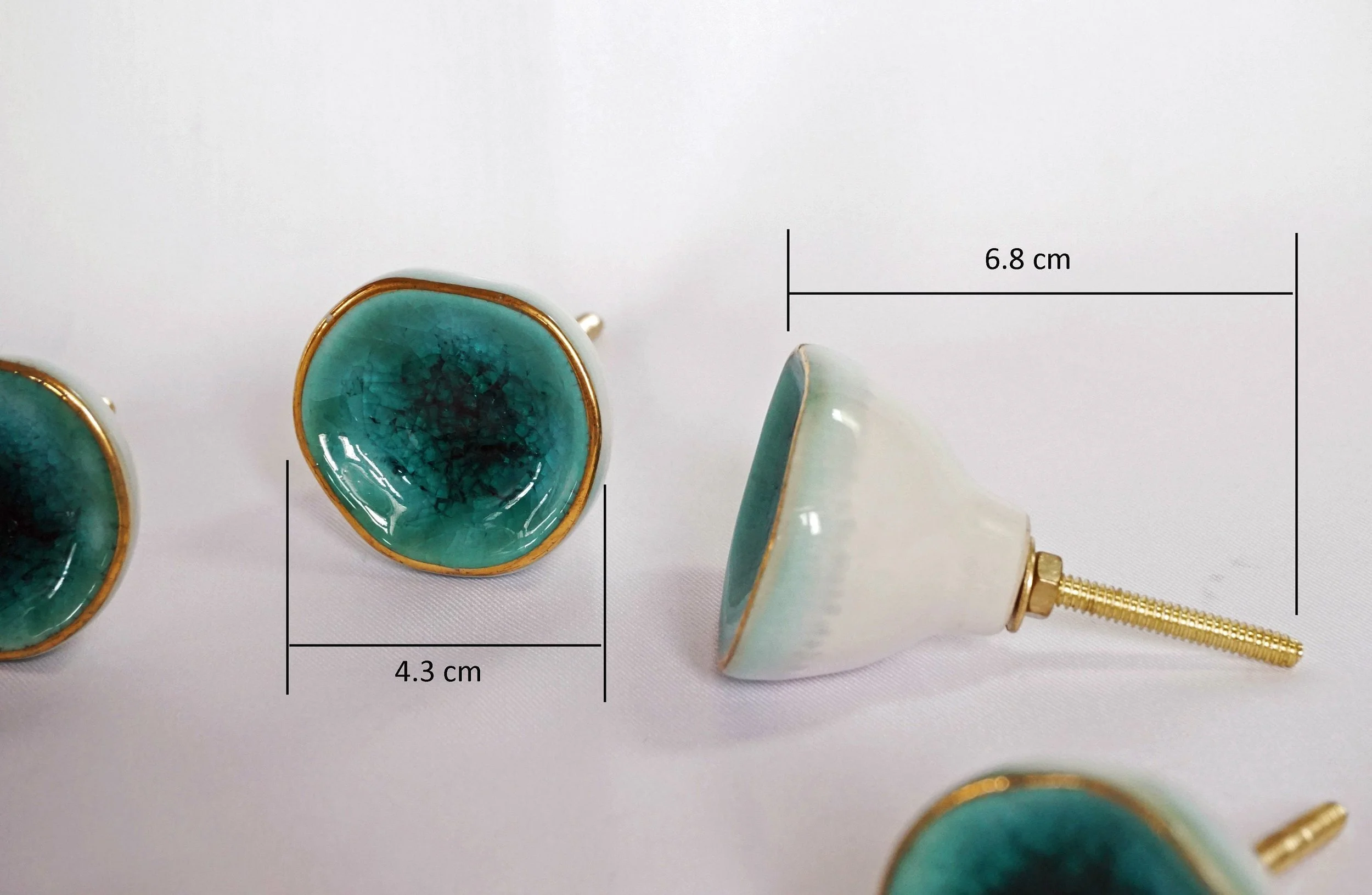 • Set of 6 Artisan Ceramic Crackle Effect Knobs / Handle / Pull with Golden Color Border & Fixing.