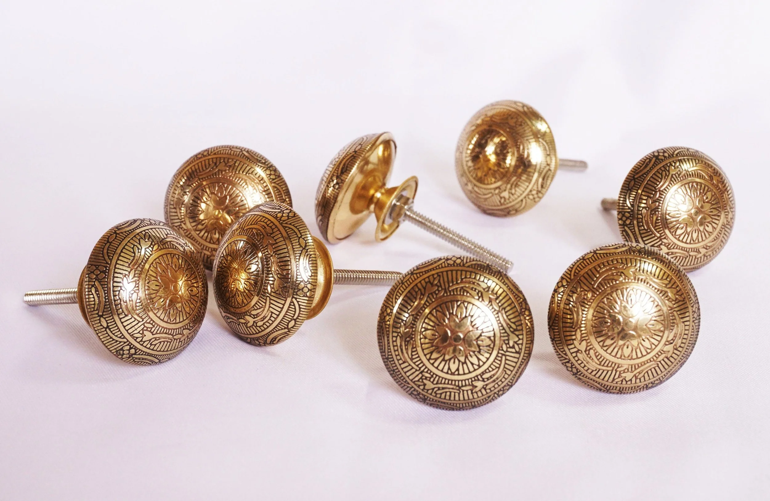 • Set of 8 Brass Artisan Drawer Knobs / Handle / Pull.