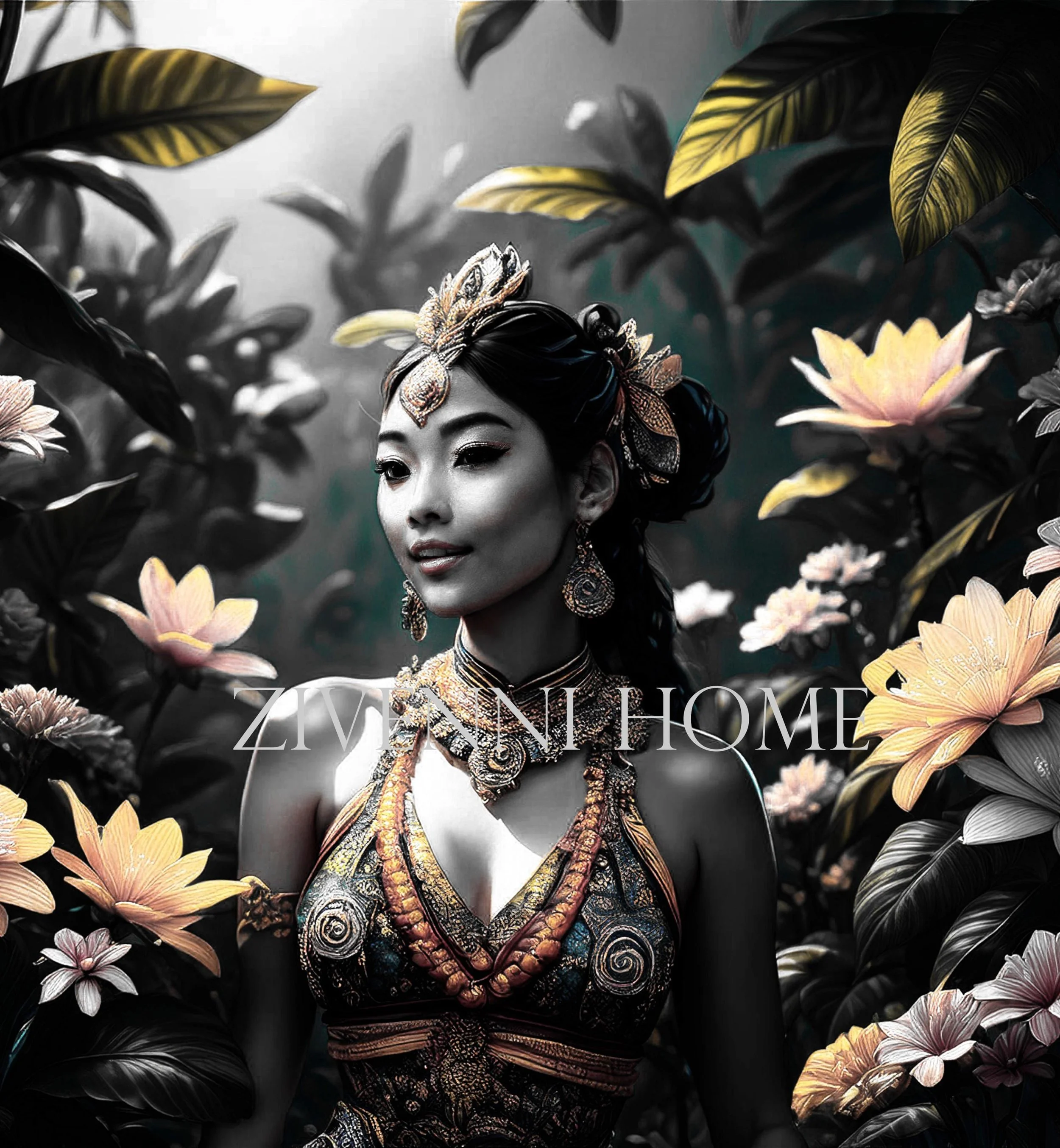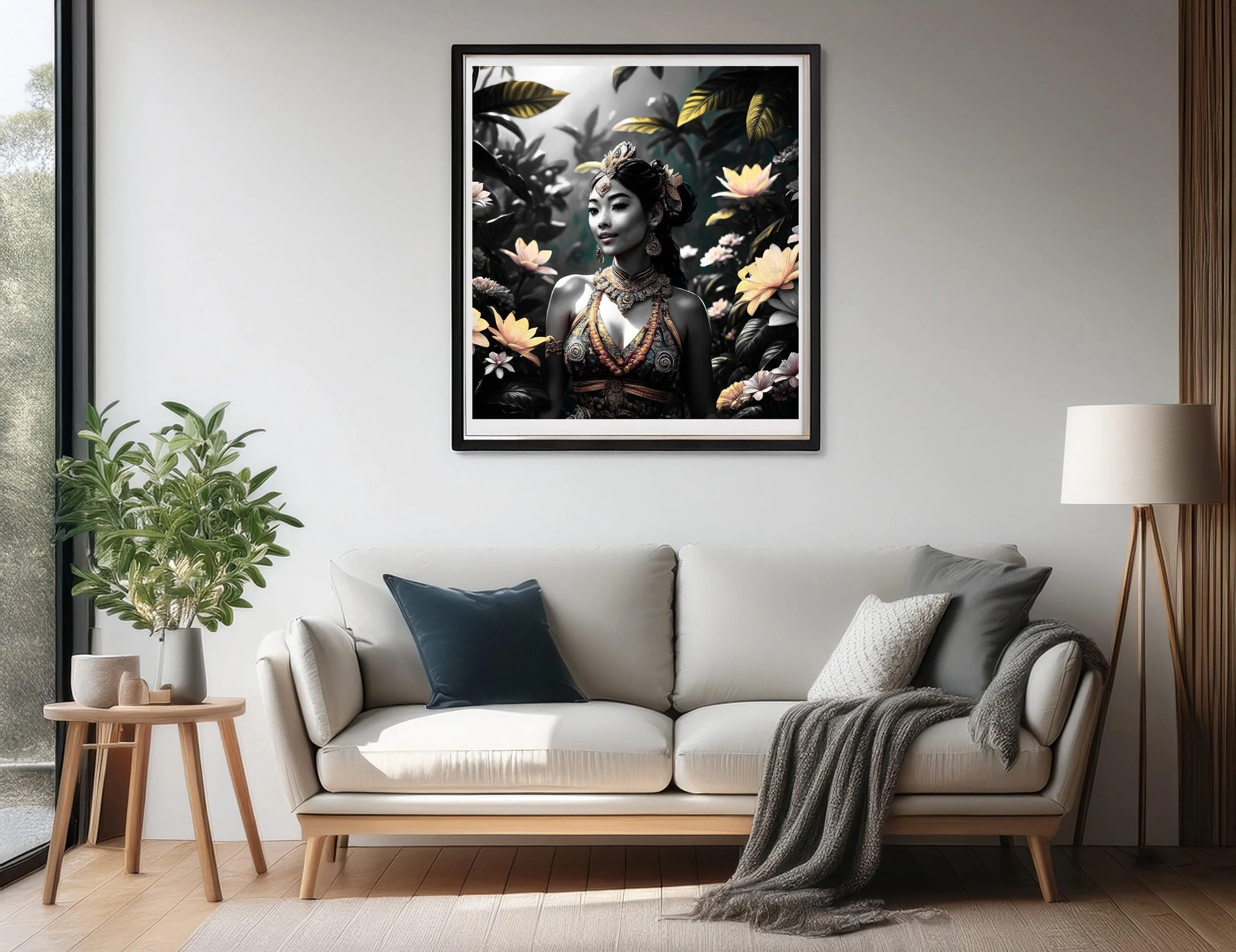 Vintage Asian Lady Art: Printable AI Art Poster (Digital Download)