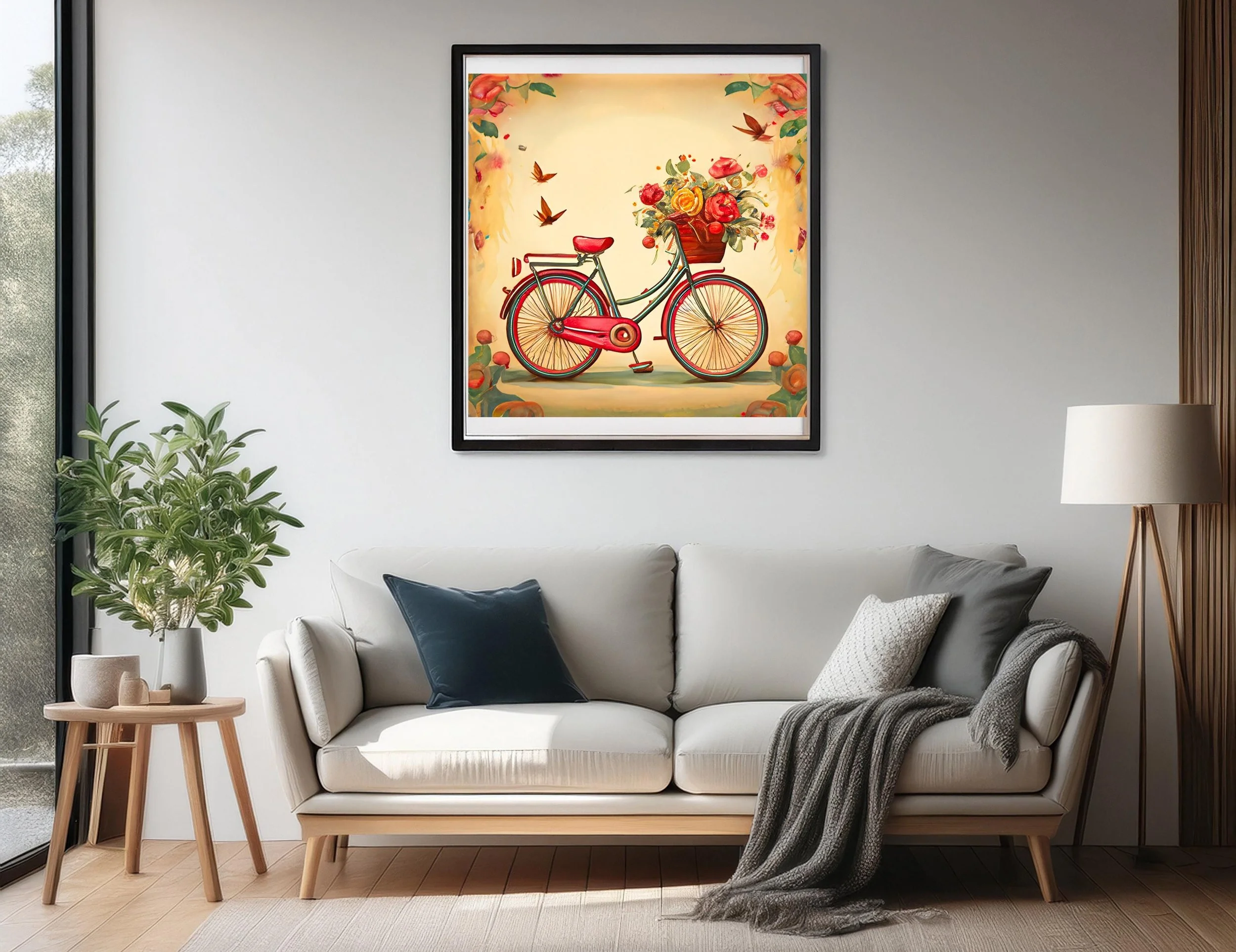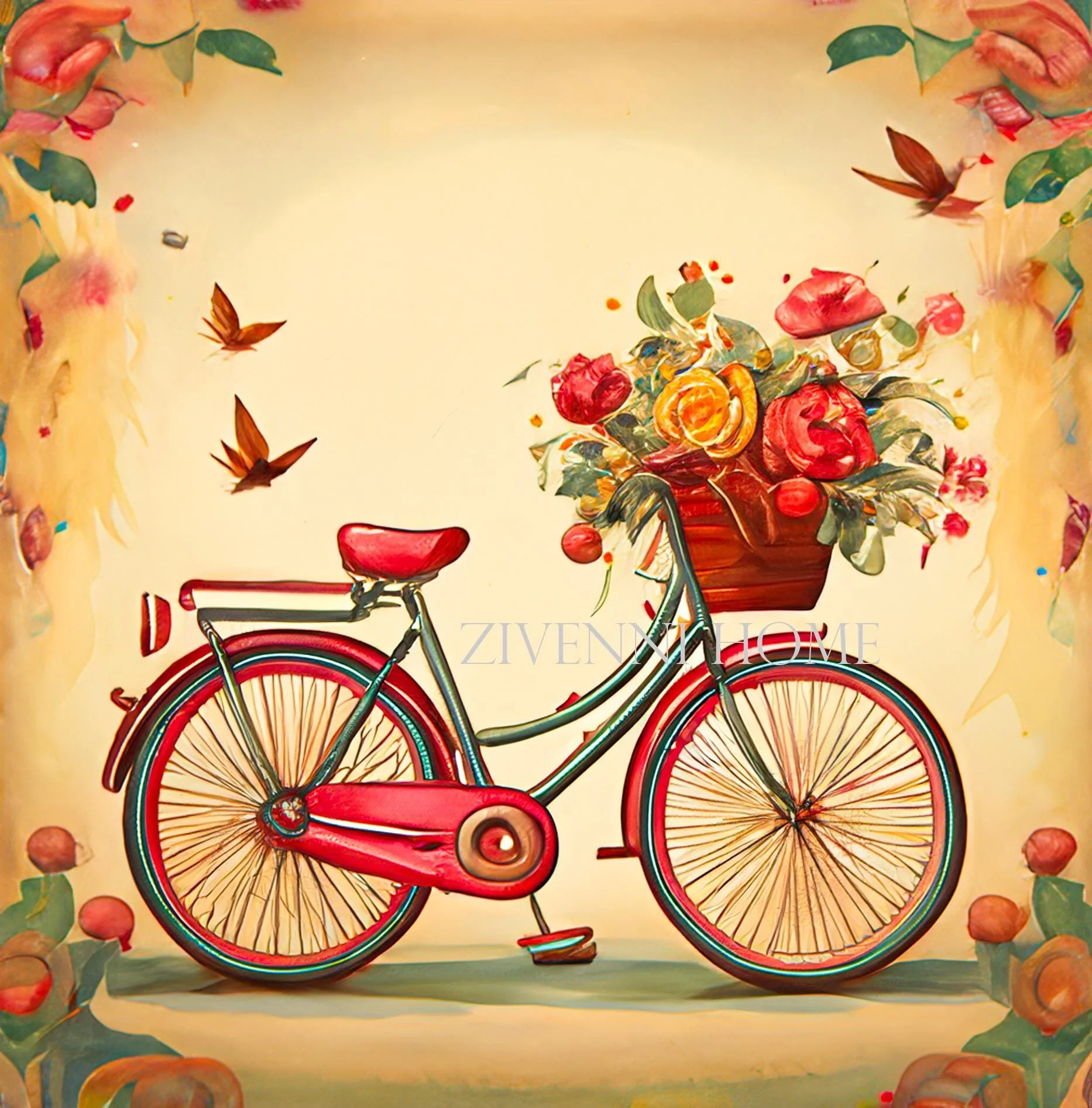 Vintage Bicycle Painting: Printable AI Art Poster (Digital Download)