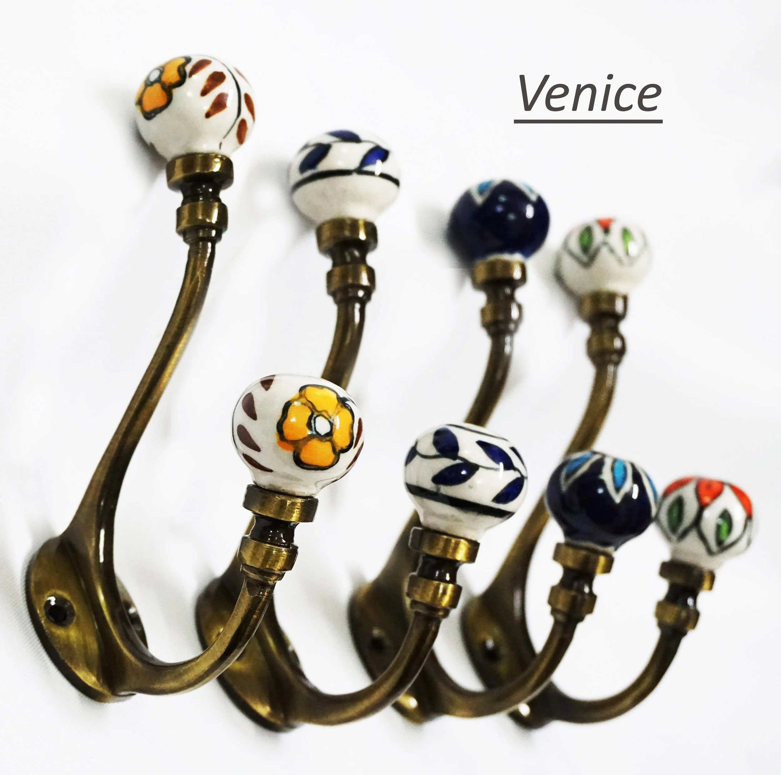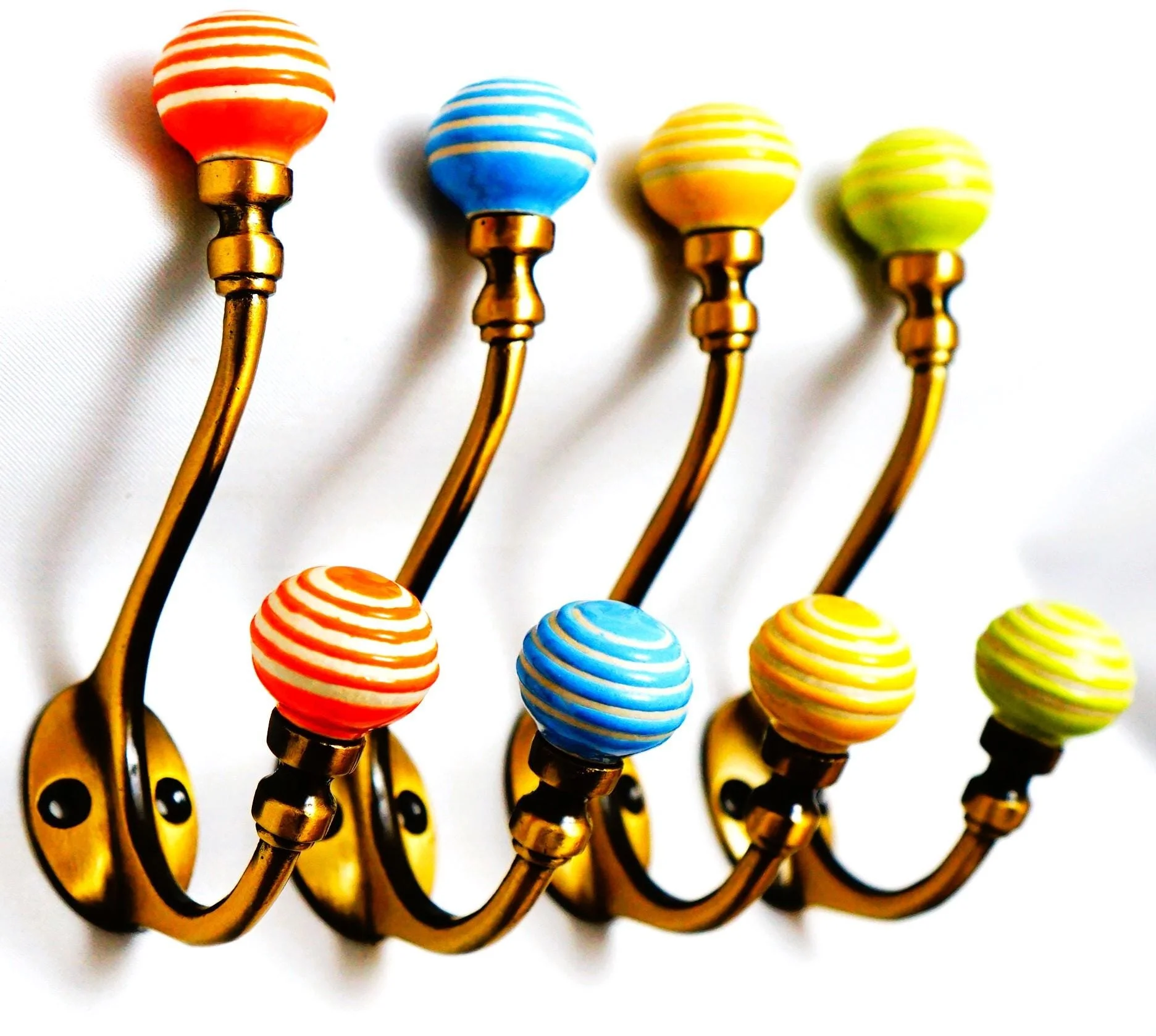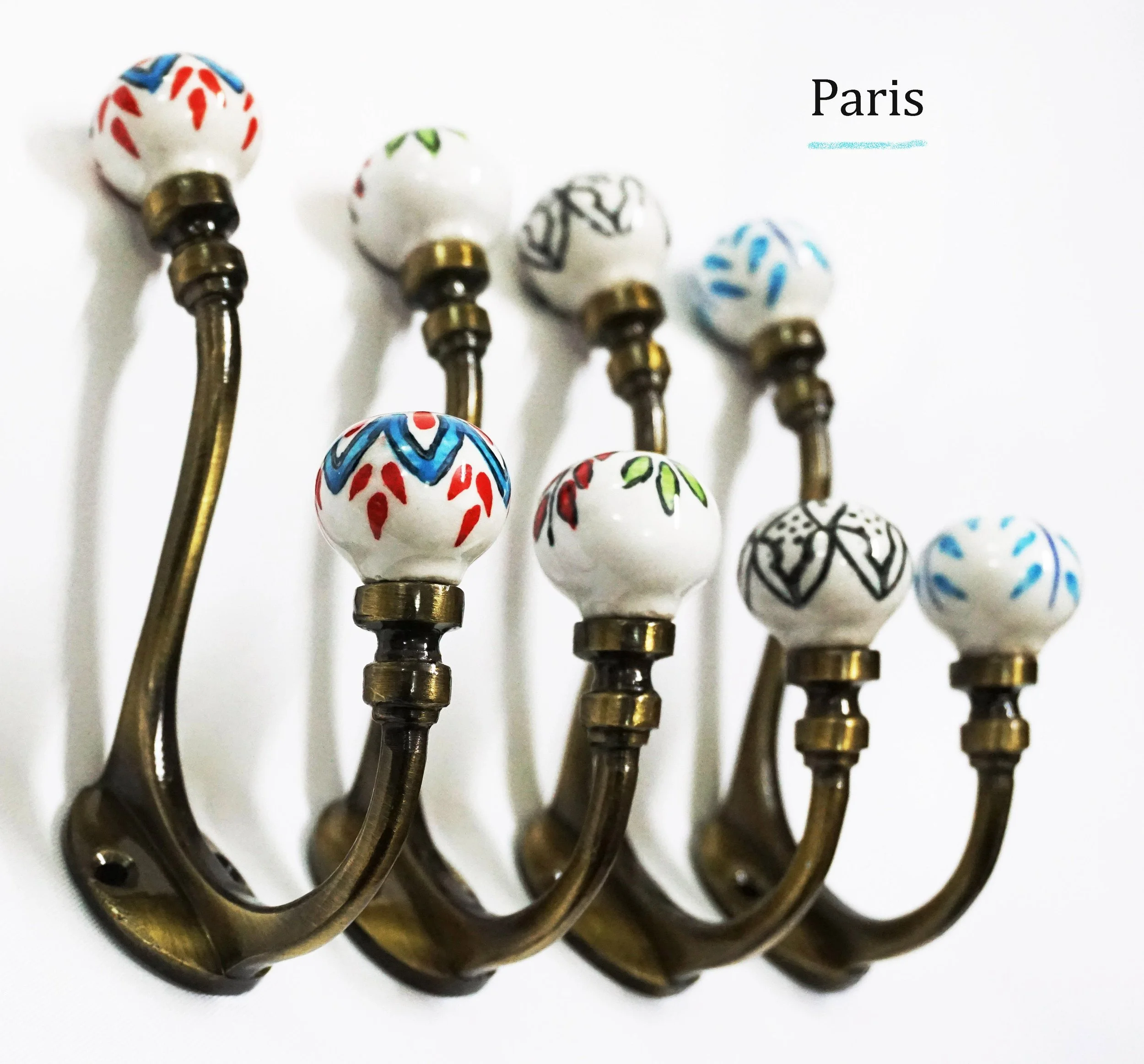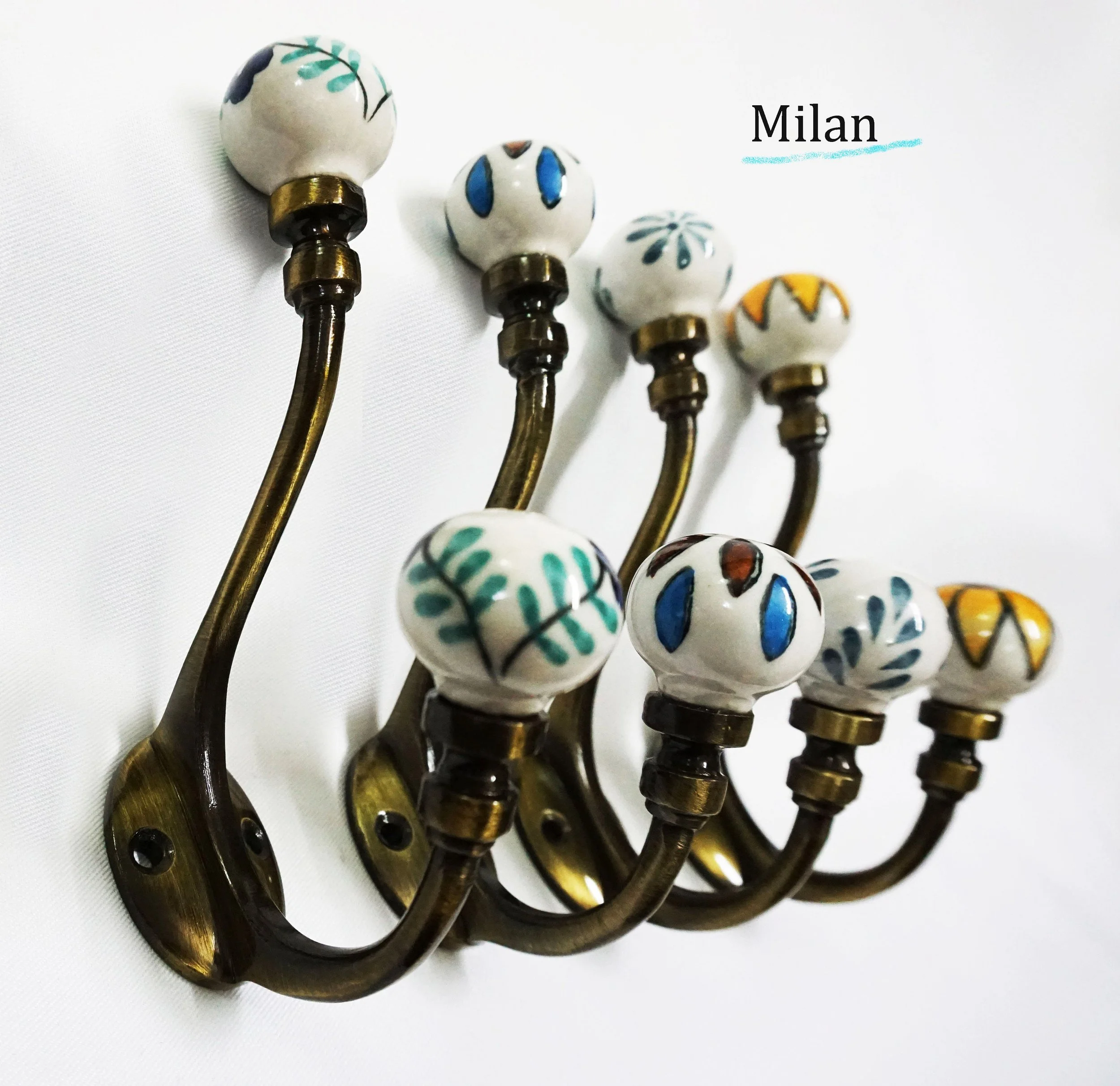 Featuring vintage-style Brass Bronze Finish Aluminium Metal and hand-painted ceramic tops, these hooks blend artisanal beauty with everyday practicality. Perfect for your hallway, bedroom, bathroom, or entryway, they offer a stylish solution to keep coats, scarves, bags, and hats organized and accessible.